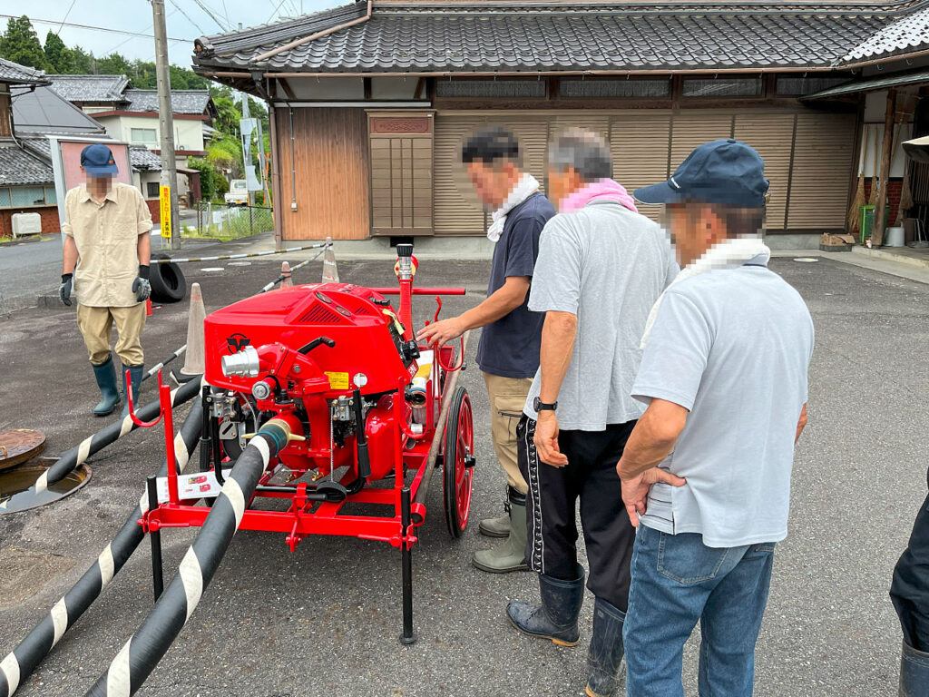 午前中は地元・鳥居平区の自警団、自警引きつぎ隊による消防ポンプ・消火栓等の点検を行い、区内すべての消防設備において問題がないことを確認いたしました。
