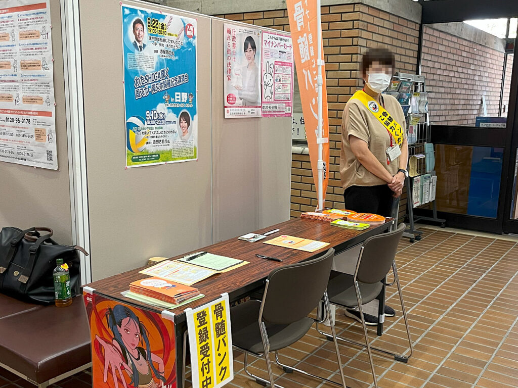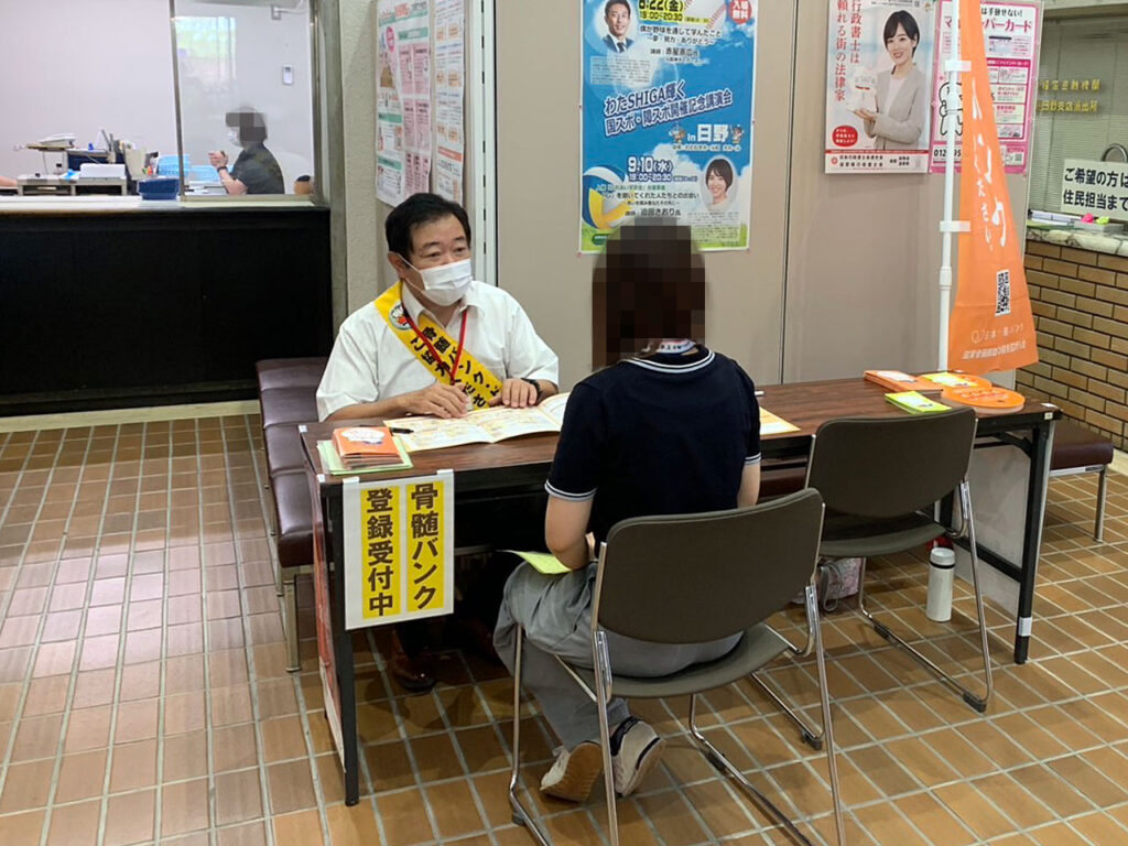 午前中に開催した議会運営委員会の終了後、午後は夕方まで日野町役場正面玄関と1階ロビーにて献血&骨髄バンクドナー登録会を実施しました。