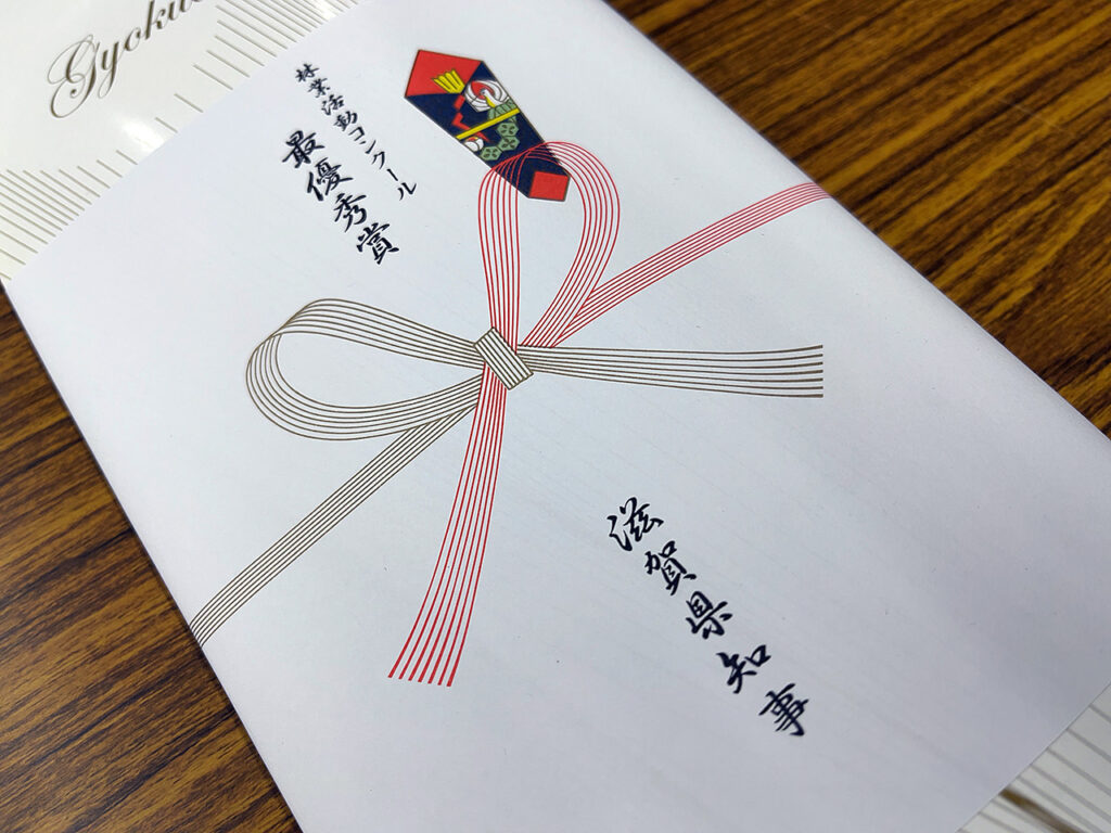 どのグループも大変活発な活動をされている中、今回は私の発表が最優秀賞・滋賀県知事賞を受賞させていただきました。