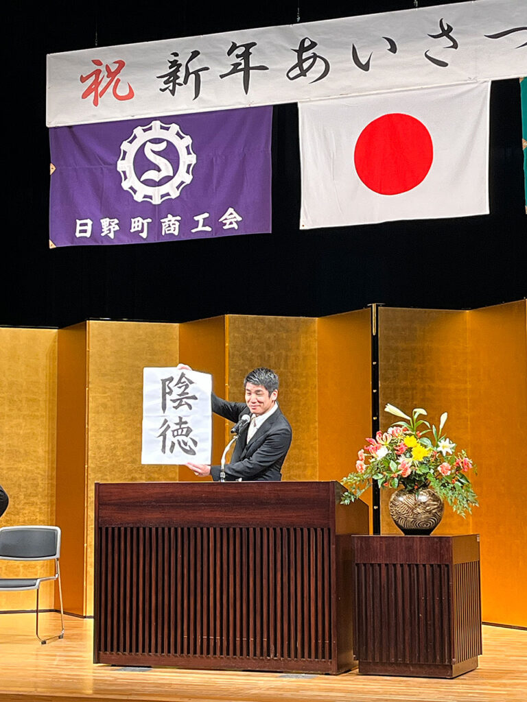 恒例となった堀江町長の今年の言葉は「陰徳」。