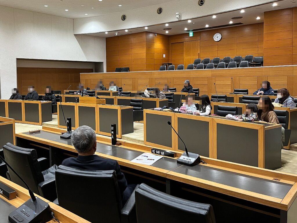私は議場で議会・議員の役目などの説明を担当させていただきました。説明を聞いていただいた後は、議長席に座ったり、記念写真を撮ったりと、普段できない体験を楽しんでいただきました。