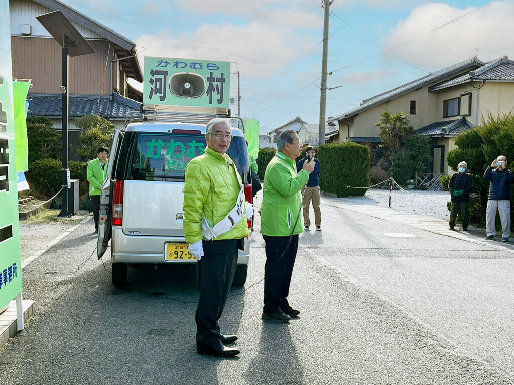 河村候補は5期20年の現職議員で、その間、障害者や子育て世帯が暮らしやすい町にと福祉の発展に努められ、また、地域交通や農業環境の改善にも尽くしてこられました。