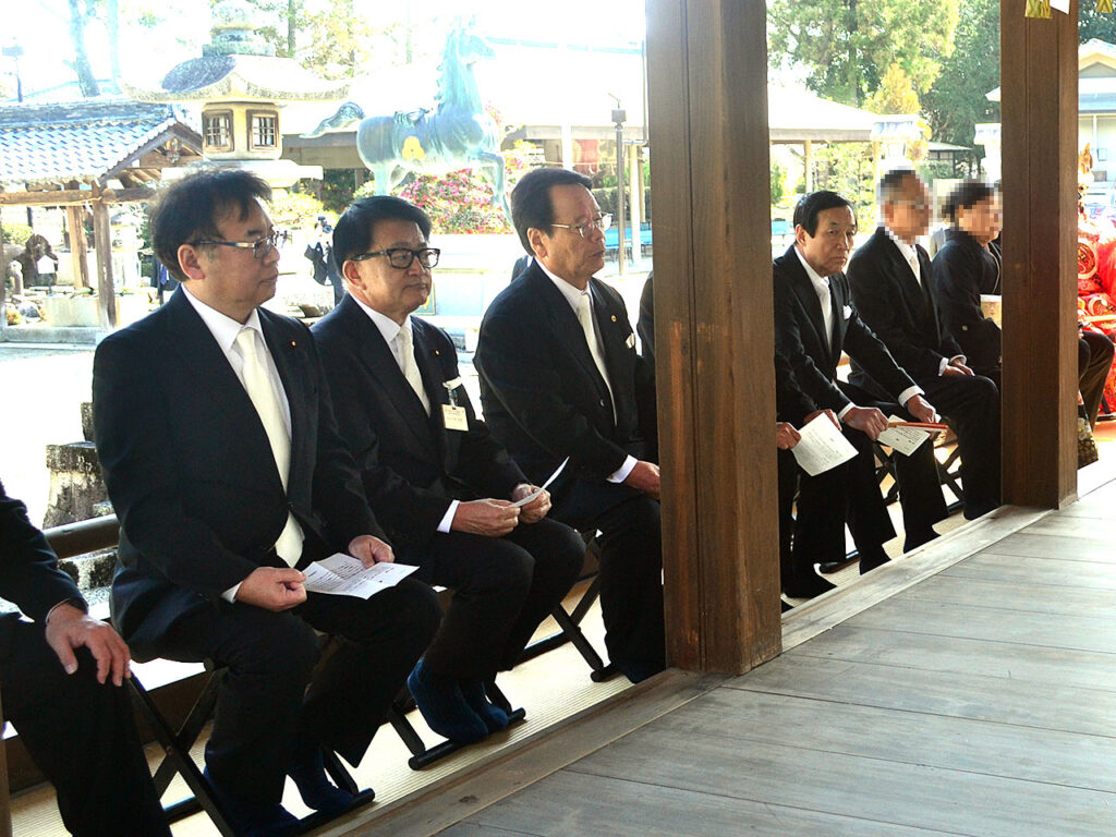 儀式殿での婚姻の義、拝殿での披露式には上野賢一郎厚生労働大臣、小寺裕雄衆議院議員、杉浦和人日野町議会議長をはじめ日野町、竜王町の幹部職員の方もご列席くださいました。