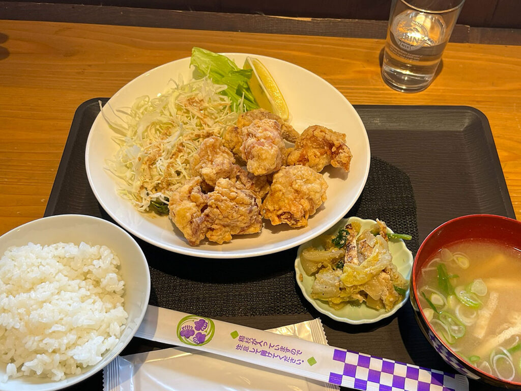 「なないろ」でランチ ときどき日記 2026.03.24 昨日で3月議会が閉会し、今日は家内と日野駅舎観光交流施設「なないろ」の”なにわやさん”でささやかなお疲れ様会。 家内は定番の天ぷら定食、私は唐揚げ定食をいただきました。美味しくてボリューム満点! 英気を養ったところで、新年度に向け気持ち新たに頑張ります。 家内はいつもの天ぷら定食 私は初めての唐揚げ定食 なないろ併設の鉄道ミニミュージアム。「彦根花室駅」看板は有村架純さん主演映画「花まんま」ロケ時に日野駅に掛けられていました